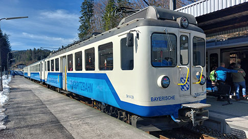 Der Triebwagen des Talzuges. In Grainau ist Umstieg zu den Zahnradtriebwagen, die hinauf zum Zugspitzplatt fahren.