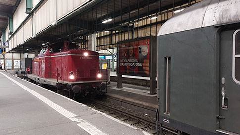 Die Fahrt führt über Stuttgart Hbf. Dort bleibt die 212 der DBK zurück. Die E 10 am anderen Zugende wird uns ab Stuttgart alleine ziehen bis München-Pasing. Und von dort nach Kopfmachen weiter nach Garmisch-Partenkirchen.