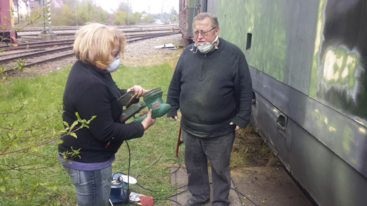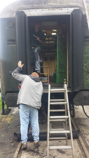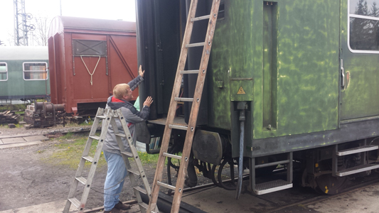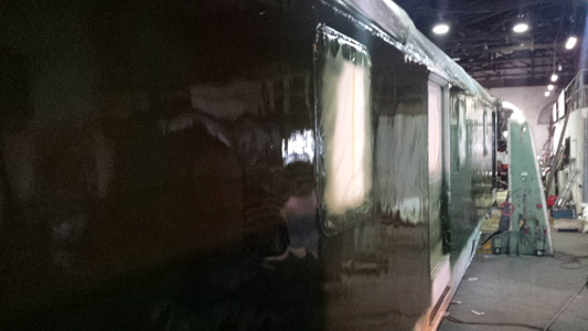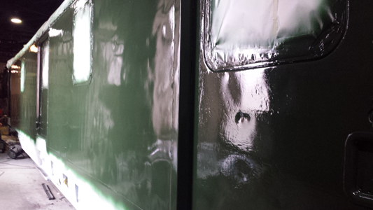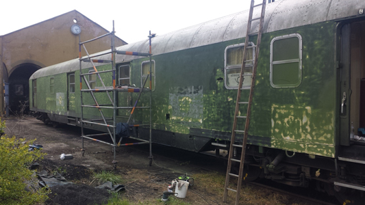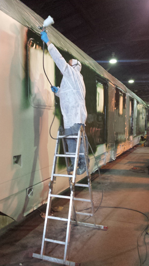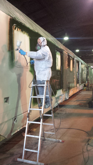 Nachdem die Grundierung auf den Wagen aufgebracht war, folgte Ende Oktober die Lackierung der Wagenwände. Alle Foto`s Ralf Heinz