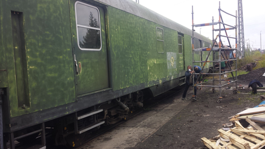 Fotos vom Einsatz im November, nach Fertigstellung der Aussenlackierung wurden diverse Teile wieder an den Bpw angebracht. An dieser Stelle möchten wir uns nocheinmal für die vielen ehrenamtlichen geleisteten Stunden bei ALLEN Mitwirkenden, Helfern, Freunden und der GfE bedanken. Euer Bahnpostmuseum