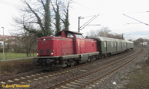 V 100 2335 mit Bpw 6276 bei der Überführung nach Heilbronn in Tamm.