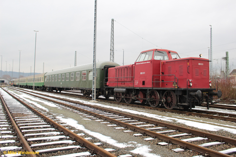 Lok 800 011 mit Sonderzug in der Abstellung Heilbronn.