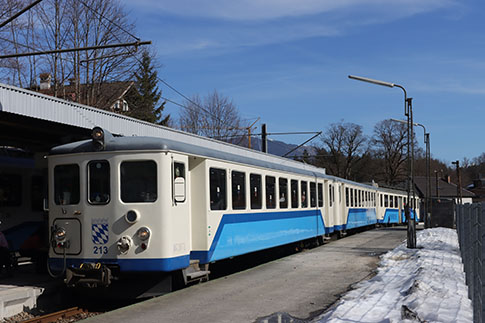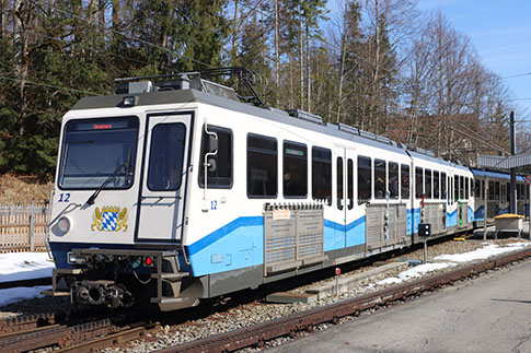 Der Triebwagen des Talzuges. In Grainau ist Umstieg zu den Zahnradtriebwagen, die hinauf zum Zugspitzplatt fahren.