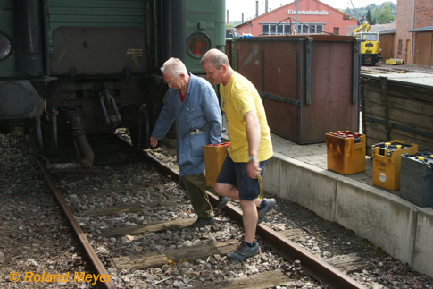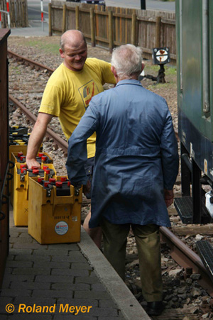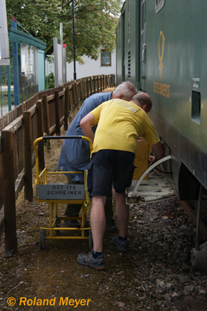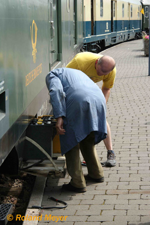 ... Batterieaustausch am Bahnpostwagen, damit der Strom stimmt